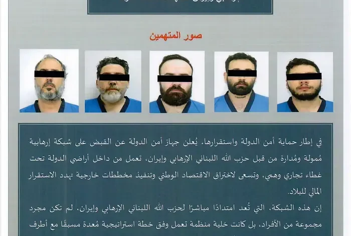 أعلن جهاز أمن الدولة الإماراتي في بيان: “عن تفكيك شبكة إرهابية ممولة ومدارة من قبل حزب الله اللبناني وإيران والقبض على عناصرها، تعمل داخل أراضي الدولة تحت غطاء تجاري وهمي، وتسعى لاختراق الاقتصاد الوطني وتنفيذ مخططات خارجية تهدد الاستقرار المالي للبلاد”.
