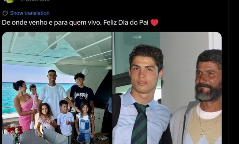 ونشر كريستيانو رونالدو صورةً نادرة له في شبابه واقفاً بفخرٍ إلى جانب والده الراحل، بالإضافة إلى صورةٍ أخرى تجمعه بعائلته الحالية، التي تضم خطيبته جورجينا رودريغيز وأولادهما.
