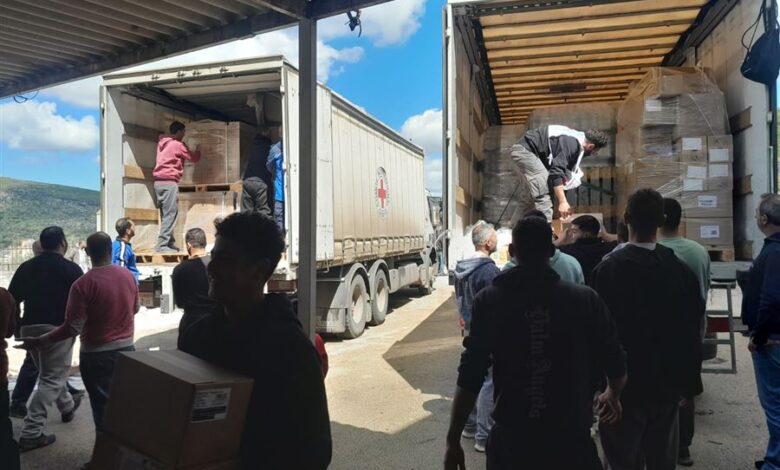 بعد ٥ ايام من الحصار وصول اول قافلة مساعدات الى دبل مواد غذائية وادوية، بمواكبة من الصليب الاحمر الدولي والصليب الاحمر اللبناني.