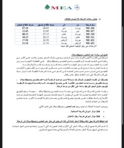 “الشرق الأوسط” تعدّل مواعيد إقلاع رحلاتها من بيروت بين 12 و15 نيسان