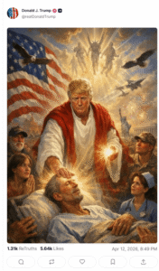 نشر الرئيس الأميركي دونالد ترامب صورة مولّدة بالذكاء الاصطناعي عبر منصته تروث سوشيال، ظهر فيها بهيئة شبيهة بالمسيح وهو يضع يده على أحد المرضى، في مشهد يوحي بـ“الشفاء”، ما أثار موجة غضب وانتقادات واسعة على منصات التواصل الاجتماعي.