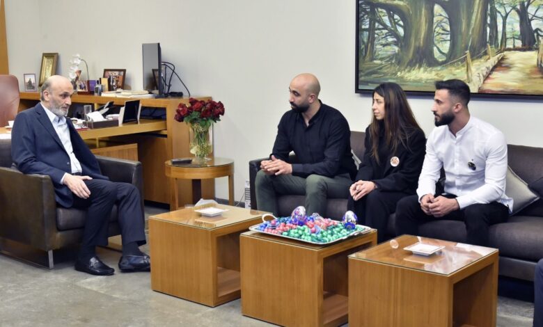 جعجع يلتقي أبناء الشهيدين بيار وفلافيا معوّض في معراب