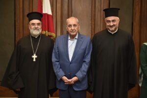 كما عرض الرئيس بري الاوضاع العامة وشؤونا وطنية خلال استقباله الاب الياس شتوي والخوري وديع نعمة.