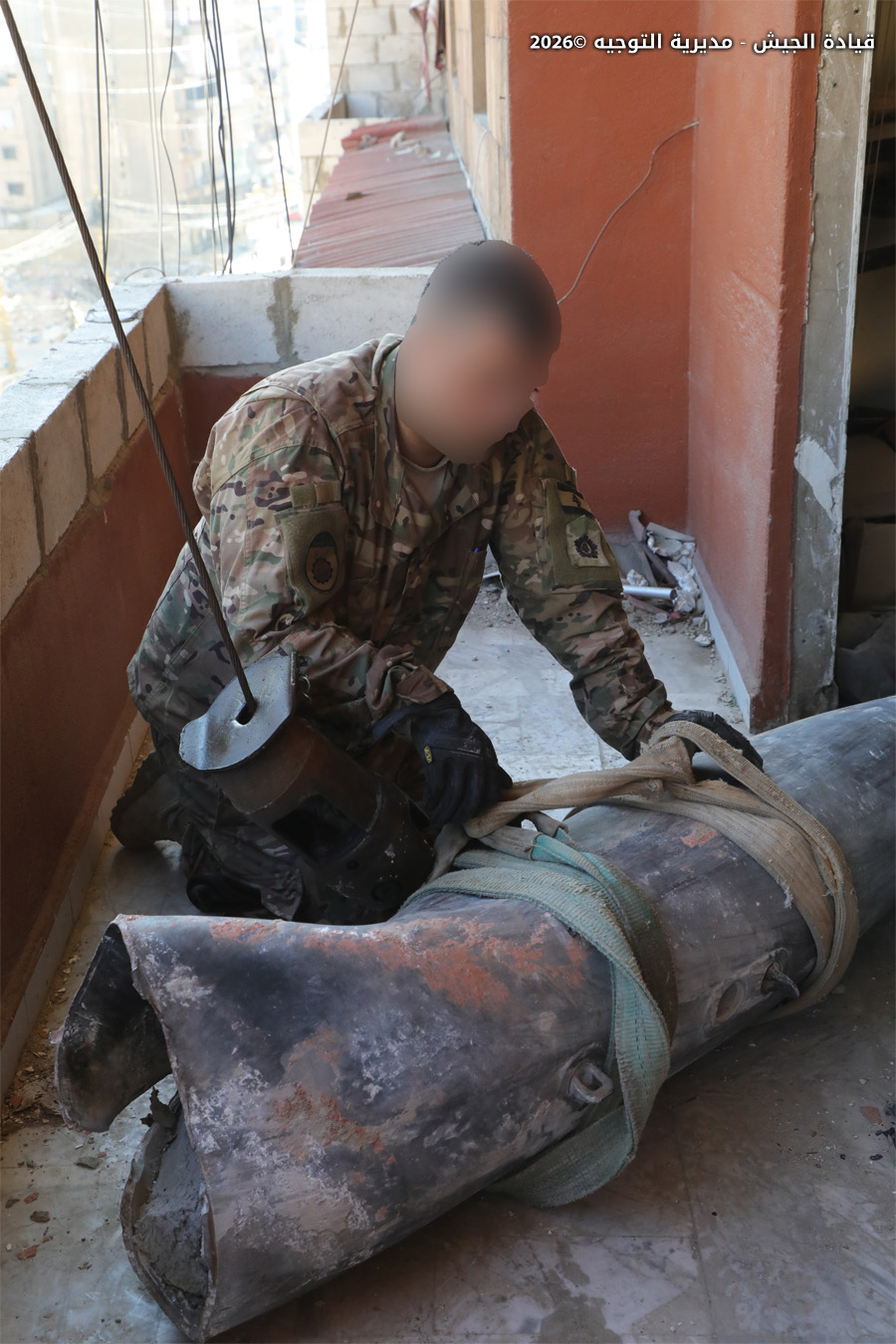 عملت وحدات مختصة من الجیش على تفكیك 8 قنابل طیران غیر منفجرة من مخلفات العدوان الإسرائیلي في مناطق الضاحية الجنوبية – بعبدا ومجدل سلم – مرجعيون وعيتيت وزبقين – صور وحبوش – النبطية، ثم نقلها إلى مواقع آمنة لإجراء اللازم بشأنها.