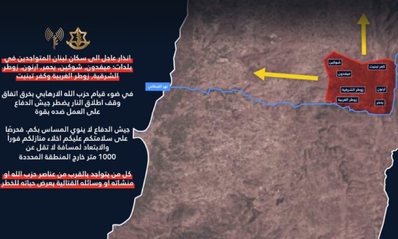 إنذار عاجل الى 7 قرى في جنوب لبنان