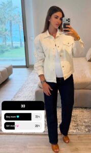 ونشرت الشابة الأردنية عبر خاصية “الستوريز” صورة عفوية بإطلالة بيضاء، وطرحت سؤالًا على متابعيها حول جنس الجنين، فاتحة باب التصويت بين ذكر وأنثى. وقد أظهر التفاعل أن الغلبة كانت لخيار الذكر، من دون أن تعلن حتى الآن بشكل رسمي عن جنس مولودها.