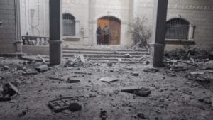 بالصورة: الدمار الذي سببته الغارة قرب مستشفى دار الامل والتي استهدفت مبنى من طابقين