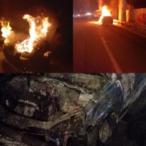 احتراق مركبة على اوتوستراد الضبية المسلك الغربي والاضرار مادية وحركة المرور طبيعية في المحلة.