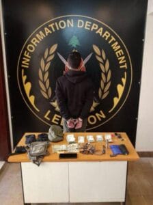 بالتاريخ ذاته، وبعد عملية رصد ومراقبة دقيقة، تمكّنت إحدى دوريات الشعبة من توقيفه في محلة الصفير على متن دراجة آلية لون زيتي دون لوحات تم ضبطها. وبتفتيشه والدراجة، تم ضبط أدوات تُستَخدَم في عمليات السرقة، قبّعة وقفازات، سيف، مبلغ مالي وهاتف خليوي.