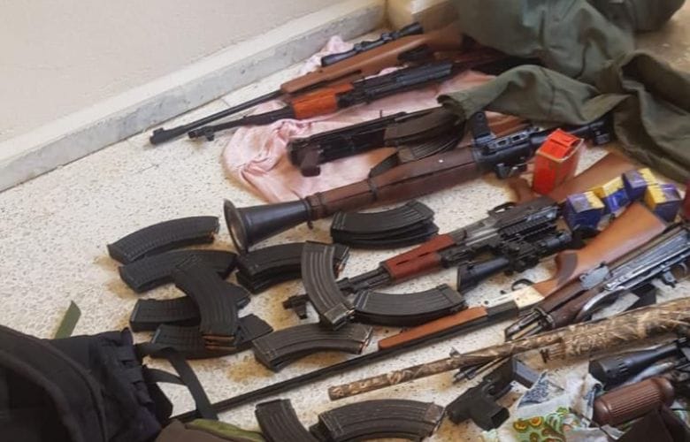 – دهم منزل المواطن (ج.ن.) في بلدة حقل العزيمة – الضنية وتوقيفه وضبط كمية كبيرة من الأسلحة والذخائر الحربية.
