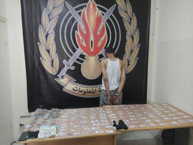 بتاريخ 27-5-2024، وبعد عملية رصد ومراقبة، تمكنت احدى دوريات هذه الشعبة من القاء القبض عليه في محلة أوتوستراد السيد هادي بالجرم المشهود، بعد أن حاول الفرار من أمامها محاولا دهس أحد العناصر وإطلاق النار باتجاهها، لكنهم تمكنوا من السيطرة عليه وتوقيفه، وبتفتيشه ضبط بحوزته ما يلي: