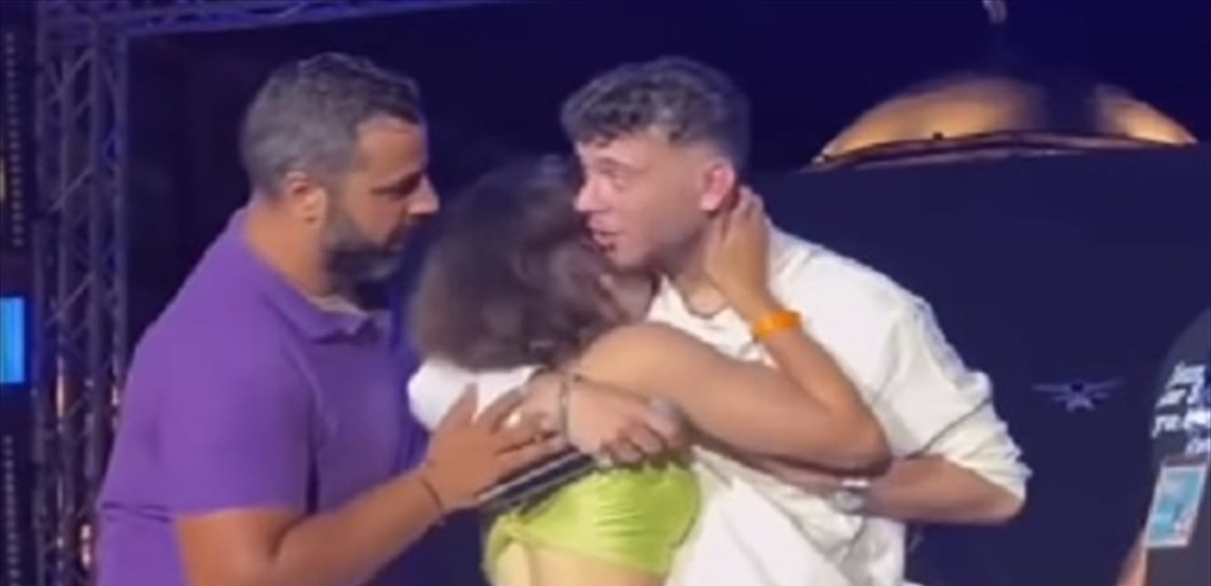 وقالت الفتاة: “حبيبي تركني كرمال الشامي، شو بعمل يعني؟” وتجدر الإشارة إلى أنّ الشابة تُدعى نيكول سابا، وقد انتشر الفيديو الذي ظهرت فيه وهي تُعانق الشامي على المسرح بشكل كبير على مواقع التواصل. (رصد لبنان 24)