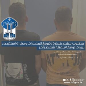 في إطار المتابعة المستمرة التي تقوم بها قوى الأمن الدّاخلي للحدّ من عمليات تجارة وترويج المخدّرات، وملاحقة المطلوبين وتوقيفهم.