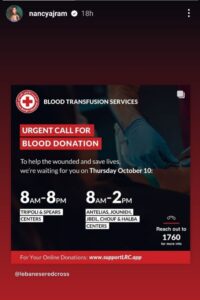 الا ان نانسي تجاهلت الرد على ما تردد من أنباء تشير إلى انفصالها عن زوجها، ونشرت عبر خاصية القصص القصيرة عبر حسابها على “انستغرام” منشورا ناشدت فيه متابعيها بالتبرع بالدم لإنقاذ جرحى العدوان الإسرائيلي على لبنان.