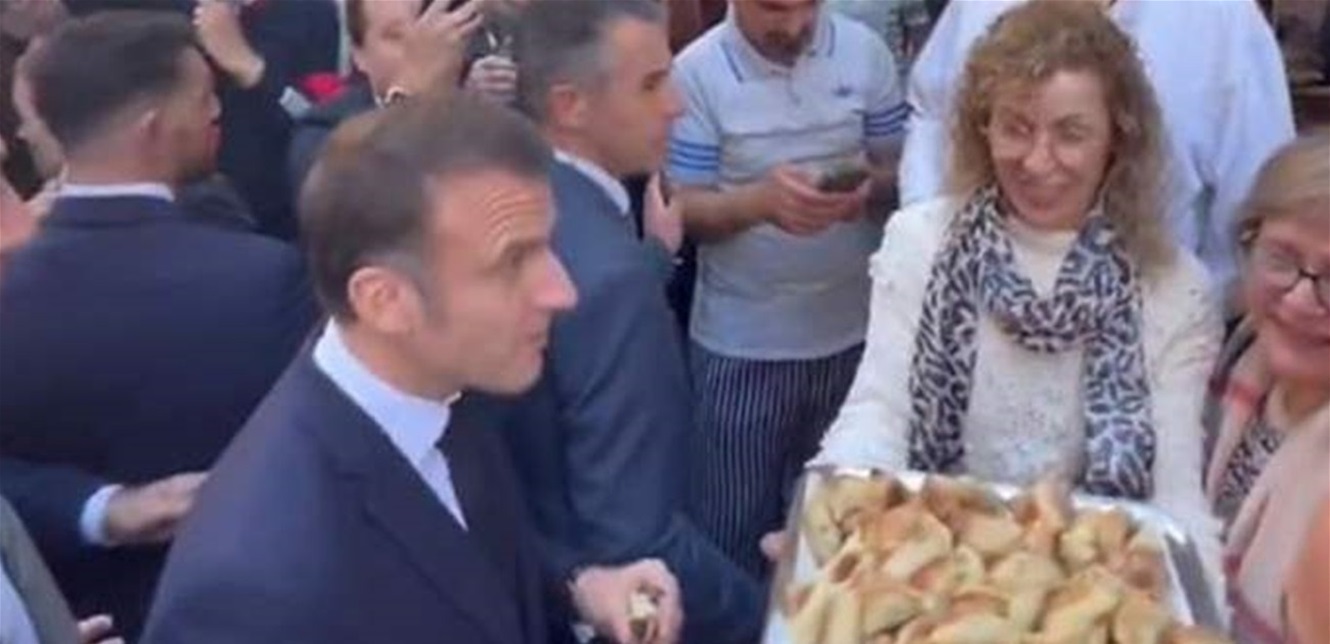 بالفيديو: ماكرون يتناول الفطائر في شوارع بيروت: “يحيا لبنان”