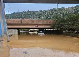 بالصورة: احتجاز مواطنين في سياراتهم بسبب الأمطار تحت جسر نهر الكلب