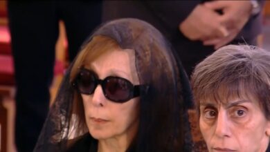 على أنغام ترتيلة “انا الام الحزينة”.. فيروز تلقي النظرة الاخيرة على جثمان نجلها