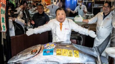 بيعت سمكة تونة ذات زعانف زرقاء تزن 243 كيلوغرامًا، بسعر قياسي بلغ 510 ملايين ين (3.2 مليون دولار)، في المزاد…