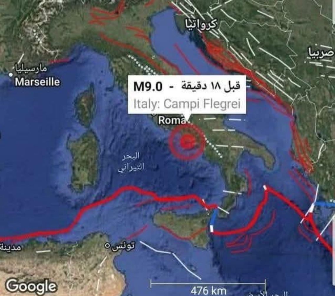 يتم تداول بخبر عن حصول زلزال مدمر بقوة ٩ درجات على مقياس ريختر ضرب ايطاليا مع صورة مرفقة للخبر وبعد…