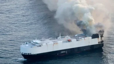 حريق هائل في عرض البحر… طاقم سفينة الشحن ينجو بأعجوبة!