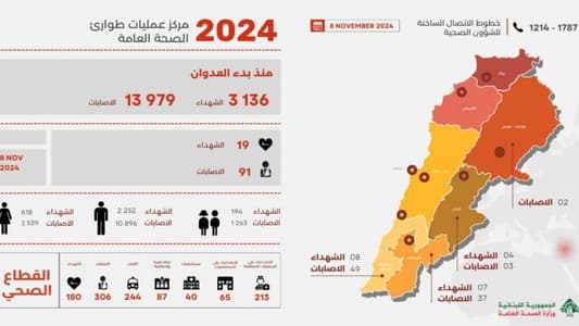 صدر عن مركز عمليات طوارئ الصحة العامة التابع لوزارة الصحة العامة التقرير اليومي لحصيلة وتداعيات العدوان الإسرائيلي على لبنان وفيه…
